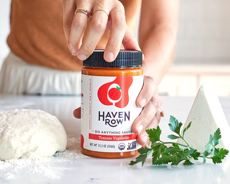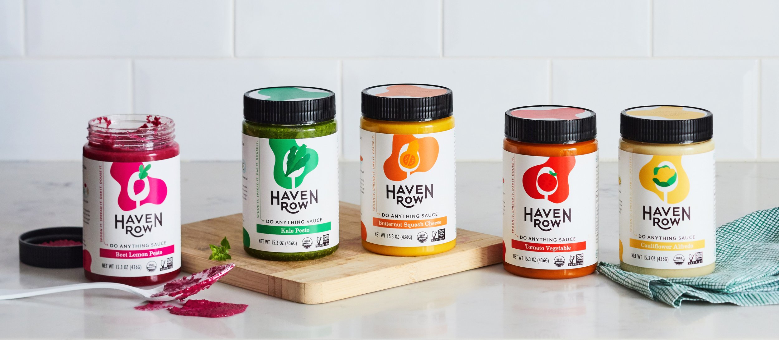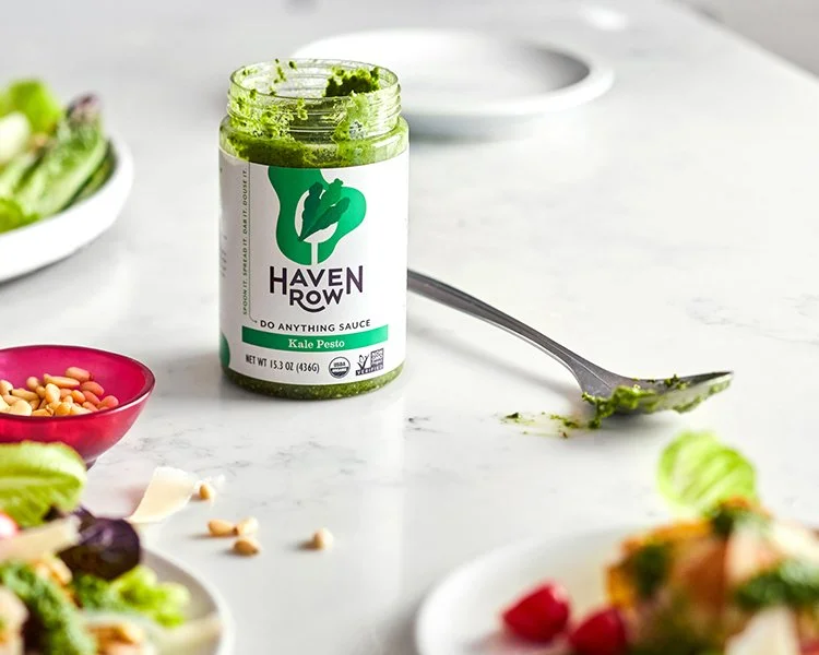 Haven Row partnered with Communal Creative for their brand launch with a line of versatile, veggie-based sauces. We partnered with the founders to craft a revised visual system that highlights the punchy, distinctive flavors of the sauces while making their "do anything" utility immediately clear. We leaned into a bold, color-blocked aesthetic and a tactile art direction that celebrates the rainbow of ingredients.